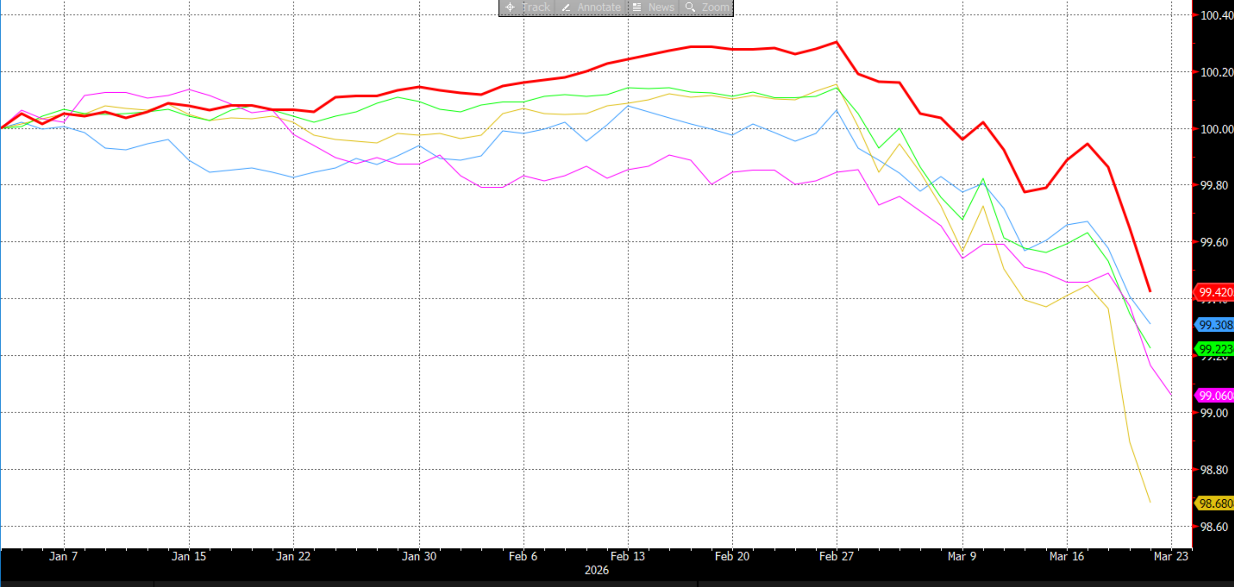 3. Wider collateral selling. Potential collateral sellers abound. EM Central banks are well enough reserved, but with import bills in many places about to skyrocket - those must be drawn down. With realised vol rising, clearing houses will demand more margin. Bonds and cash must be sought and posted, or positions liquidated (feeding back into step 1…). Gulf countries must finance defence expenditures, and increased living costs, whislt facing a collapse in export revenues. I hear they have quite a few treasuries to sell. They also invest heavily in supply chain and factoring… so feeding back into step 2. We are far enough into conjecture here that I’m happy not to bother with the scare tactic of making up numbers.